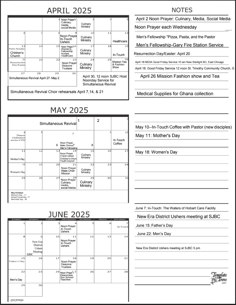 Calendar of Events